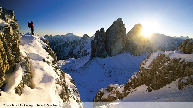 The region of South Tyrol is located on the sunny side of the Alpes and gets its snow from the Genoa-low. Here winter sports fans will find much sun, good food and depending on preference everything from smaller ski stations with groomed pistes to the incredible Dolomiti Superski area.